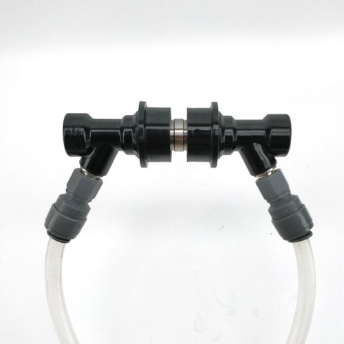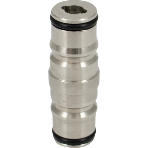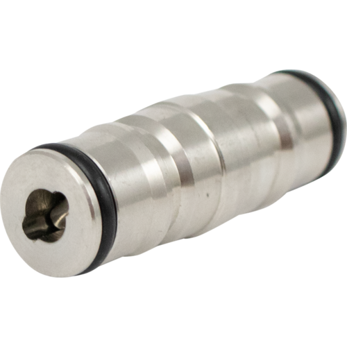 Clean multiple beverage draft lines in a single loop using this Ball Lock Keg Jumper Post. Makes cleaning your kegerator or keezer a breeze without the need to remove your quick disconnects. This double ended keg post does not have a spring & poppet. It just has a piece of bar that activates the ball lock disconnect wide open.